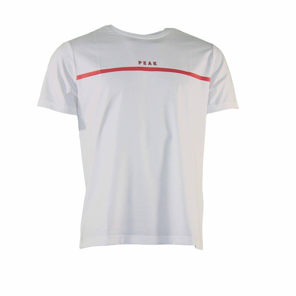 Pánské triko značky Peak s krátkým rukávem. Triko je klasického příjemného střihu, který je velice oblíbený na nošení. Přes prsa trika je potištěný pruh spolu s logem značky.